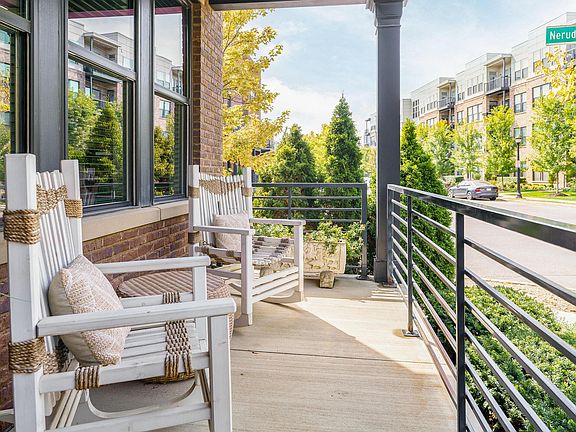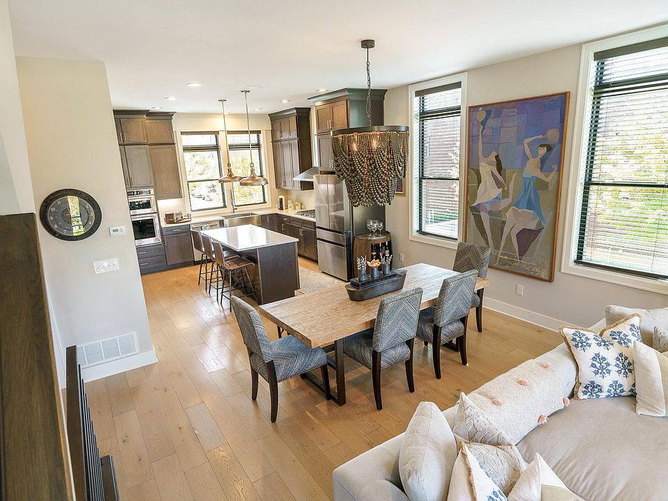Fabulous brick townhome—value priced—with gorgeous custom finishes throughout! This home is Full of natural light with hardwood floors on all levels, including the finished lower level. The chef's kitchen features quartz counters, floor-to-ceiling cabinetry, and stainless steel appliances with double ovens, all open to a spacious great room with a gas log fireplace and balcony. The top floor boasts an incredibly large private balcony with tremendous, unobstructed views. A first-floor office with a full bath offers great flexibility, and the finished lower level includes a half bath. All bathrooms are beautifully tiled for a luxurious feel. Total of 3 full baths and 2 half baths with 2 bedroom suites upstairs and additional office/family room spaces on first and lower levels that can second as optional bedroom spaces. See A2A remarks.