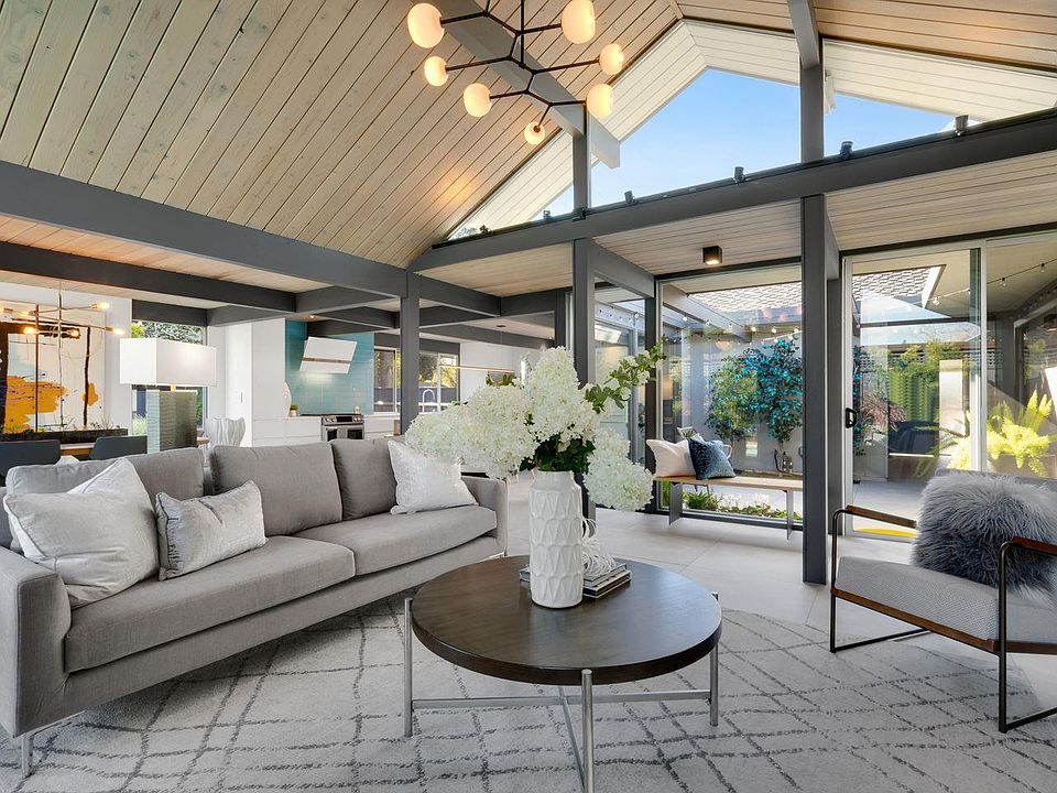 Move in and enjoy this exceptional Eichler with a-frame open beam ceilings & floor-to-ceiling windows. The ultimate California living awaits. Sunny & open. Completely remodeled in 2017 by Eichler specialists Flegel Construction for the needs of a modern family with a nod to mid-century modern styling. Designer finishes. Thoughtful design. 1 of only 5 in Eichler's Parmer Place tract with an oversized lot- nearly 1/3 acre. Passageway access to award-winning Cumberland Elementary. Quiet street. Huge chef's kitchen with large island & quartz counters. Flash-heating for all-house radiant heating. Full-house water filter. Toto fixtures in both bathrooms. Primary suite with private office enclave & dream shower. Mitsubishi mini-split A/C. Mud room & attached 2 car garage. Dream backyard with pool, large patios & low-maintenance modern landscaping. Walk to Downtown Sunnyvale, Trader Joe's, Library, Las Palmas Park & Sunnyvale Middle. Short commute to Google, Apple & Homestead High. Wow.