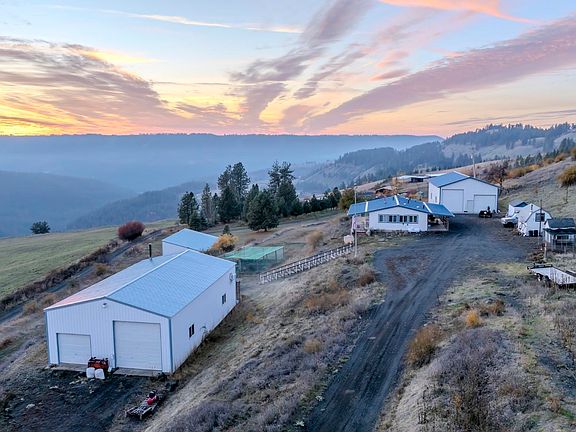 2BR/2BA single-level home with covered decks on front and back with beautiful views and close to town! New well, sprawling 17.44 acres and three shops! One finished 32x55, wired, loft, wood stove & insulated with amazing electric doors. One 33x56 with electric doors, wired & perfect for RV storage. One 30x50 machine shop with five bays. A small heated work shop and a tool storage shed. Cherry, apple, peach & pear fruit trees and plenty of room for garden and animals. Private road and serenity.