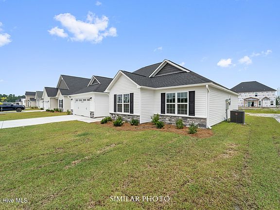 Welcome to the highly desired & popular community of Onslow Bay. Brand new construction built by Onslow County's most trusted & preferred builder. Onslow Bay is a hot spot, 3 miles to MCB Camp Lejeune's Piney Green gate, 14 miles to New River Air Station & minutes to area schools, shopping & dining. This beautiful neighborhood is sure to impress, complete with a clubhouse area & community pool. Welcome to the Vienna 1788 featuring 3 bedrooms, 2 bath with approx. 1788 heated square feet. The spacious foyer welcomes you into the huge living room that is approx. 18x21. Living room features a ceiling fan, a fireplace with a custom mantel and is open to the kitchen. Kitchen features flat panel staggered cabinets and stainless-steel appliances to include a smooth top range, dishwasher and built-in microwave. The master suite features a walk-in closet that is approx. 9x13 and a ceiling fan. Master bath includes dual vanity, a separate shower and a soaker tub. Bedrooms 2 & 3 are located on the opposite side of the house, both pre-wired for ceiling fans. Out back is the open patio for your grill or to enjoy your morning coffee. NOTE: Floor plan renderings are similar and solely representational. Measurements, elevations, and specs may vary in final construction. Limited selections for buyer to choose. Call L/A to verify.
