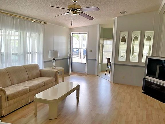 This truly turn key home is located on a cul-de-sac. The lot is a premier lot with no homes behind it. Roomy 2/2 with a large home feel. Large chefs kitchen with plenty of counter space. Eat in kitchen with plenty of natural light. Formal Dinning room and living room. A separate laundry room with side entrance. Large walk in closets and a linen closet and cabinet. A brand new AC unit just installed. Laminate throughout the home. This will not last see what Hometown has to offer in our Active Adult Community of Sunny South