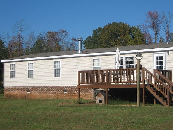 Split floor plan has master suite on one end with office/exercise room, 2 bedrooms and full bath on the other. Laminate flooring throughout, den has fireplace w/gas logs. Kitchen has pass through bar & separate eating area. 4 acres to roam include a 20'x20' metal building with concrete floor, heat, electricity, & water, full function enclosed outdoor kitchen & storage building w/electricity & water, too. Central Air with propane heat. Porch with roof added. Close to I-85 & Hwy 58 by-pass, & hospital!