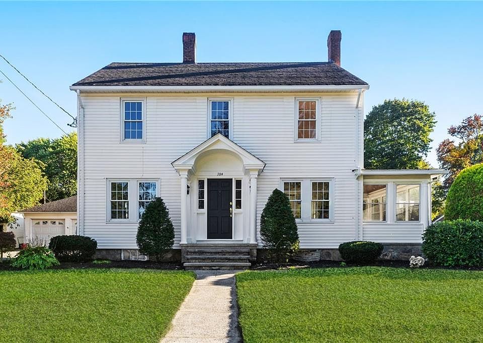 Experience luxury, style and comfort in this fully renovated Colonial on a landscaped corner lot. Modern finishes and rich hardwood floors flow throughout. The first floor features an open layout from the kitchen into the dining area and through French doors to a bright living room with a wood-framed fireplace and adjoining 3-season room. The new kitchen shines with quartz counters, designer backsplash and white appliances, and a half bath off the kitchen has a pocket door. A classic colonial staircase with wood accents leads up to the second floor, where three bedrooms include a spacious primary suite with walk-in closet and spa-like bath with custom floor-to-ceiling tile and a glass-enclosed shower; a second full bath serves the other two bedrooms. Extra attic storage space is available. Every detail has been updated, including new high efficiency heat pump HVAC, plumbing and electrical. A walk-up basement (not walk-out) and 2-car garage offer extra storage. Enjoy a beautifully landscaped yard, perfect for relaxing and entertaining. Walk to grocery stores, restaurants and conveniences; enjoy quick access to Rt 146 and I-295 for easy rides to Worcester, Providence and Boston. With top-rated schools and move-in ready condition, this home blends timeless charm with modern luxury.