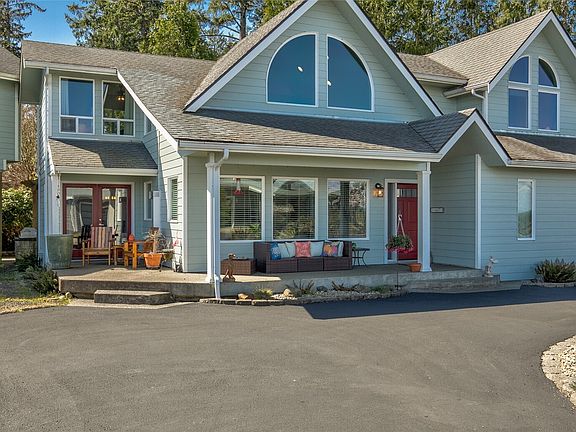 Still accepting showings & considering offers! Take in the scenery from this gorgeous home in the highly desirable bay-side neighborhood. Home sits on a corner lot w/ views of the bay & Olympics from lower & upper levels. Main house boasts views from almost every room w/ an abundance of windows & eastern exposure - upper level: Primary Suite w/ walk-in dual closets, balcony & 5-piece bath + guest bed & sitting area. Main level: great room w/ picture windows & propane fireplace, kitchen w/ dining space, pantry & SS appliances, guest bath & laundry room. Attached 752 SF 2-car garage & 1 bed, 1 bath secondary dwelling sits above detached RV garage. Enjoy the gorgeous landscape from covered front porch or back patio - perfect for entertaining!