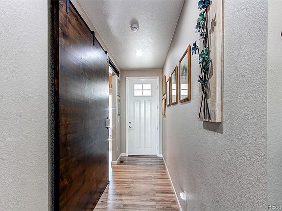 The primary suite features a spacious walk-in closet and private bath with sleek Corian countertops. At the front of the home, two bedrooms and a full bathroom are tucked behind a solid wood barn door for added privacy. All Bedrooms have ceiling fans. One front bedroom includes built-in shelving in the closet, while the third bedroom offers flexible use as a guest room, office, or hobby space.