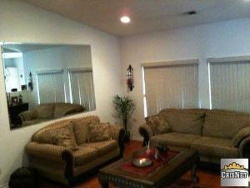 Located at the end of a cul-de-sac, this newer three bedroom, one level home with two full Bathrooms (Master Suite) and over 1,625 square feet, has recently had the interior custom painted and contains beautiful crown moldings that accent every room. A charming Fireplace greets you as you enter into this bright, light open floor plan with cathedral ceilings and wood floors throughout (except bathrooms.) The chefs Kitchen with new and newer appliances, not only contains an Island, but has a Breakfast Area with sliding glass doors that lead to a beautiful Back Yard with Covered Patio, rows of rose bushes and grassy area that is accessable not only through the Kitchen and Living Rooms, but also through the Master Suite. There is a Formal Dining Room that could also be used as a Family Room and a separate Laundry Area. Both secondary Bedrooms have mirrored closet doors, while the Master has a large walk-in closet. The Master Bathroom has double sinks, a spa tub and a separate glass shower with custom tile flooring. A row of wood cabinets/linen closets lines the hallway between bedrooms and provides plenty of storage in addition to the two car Attached Garage.
