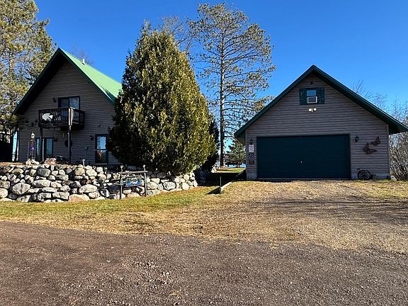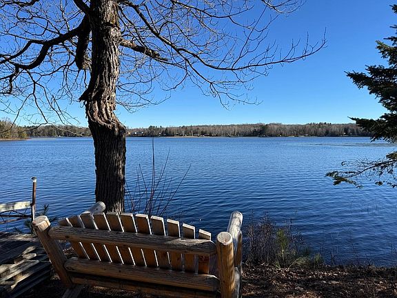 Imagine owning this exceptionally well-maintained home on a peninsula, featuring stunning views of Pine Lake from both sides of the home! Level frontage, great sand for swimming and a firepit area where you feel like you can dip your toes in the lake while roasting marshmallows! Attractive full length covered porch with stamped concrete welcomes you inside to the open concept with soaring cathedral ceiling & gas fireplace. Nice mudroom plumbed for laundry, full BA & BR with WF glass patio door. Upstairs features an open loft, master BR with private WF deck, master BA & lots of closet/storage space. In floor hydronic heat throughout the main level, plus a mini split for air conditioning & quick heat for a chilly night. The garage features drive through overhead doors, finished upper level bunk room with carpet T&G pine walls & ceiling & a lakeside deck. Includes all furnishings, pier, paddleboat, aluminum boat, garage items, LP tank & a 2004 Northwood 22 ft pontoon boat & motor!