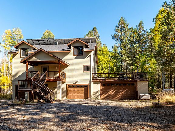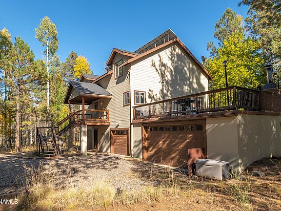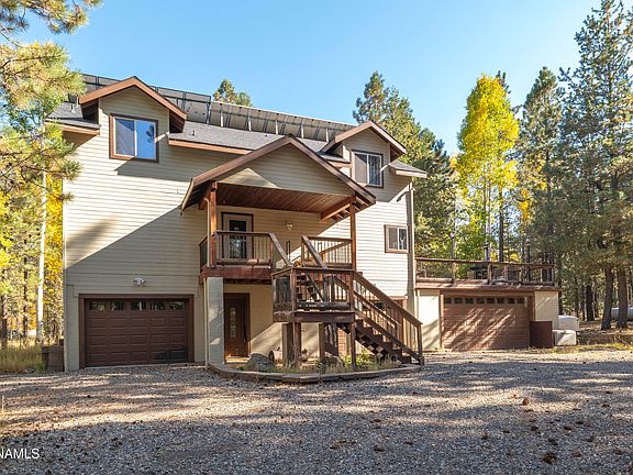 Beautiful home in Whitehorse Park sits on a 2.56-acre lot with plenty of Aspens, Pines, and a view of the SF Peeks. 5 bedrooms and 2.5 baths with a loft. Large kitchen with granite countertops and stainless steel appliances. The concrete patio with an outdoor fireplace is perfect for watching wildlife. With a 4 car garage, there is plenty of room for vehicles and snowmobiles. This home is completely off-grid with solar power, a backup propane generator, and a 5000-gallon water cistern. Do you like to ski The snow bowel ski area is a short 15-minute snowmobile ride through the woods to the base of the restaurant and only a 25-minute drive to downtown Flagstaff. Seller may consider selling furnished. Residents currently snow plow allowing for winter access after FS closes the gate.