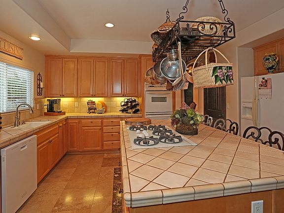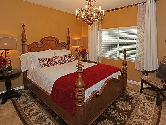 Absolutely gorgeous 4 bedroom, 3 bath home centered around a sweeping spiral staircase. This stunning Mediterranean features custom wrought iron banisters, soaring ceilings, 3 fireplaces, stone floors with inlay, wood flooring, and crown moldings. The gourmet kitchen with cooking island, walk-in pantry, and breakfast area opens to an adjoining family room with fireplace.