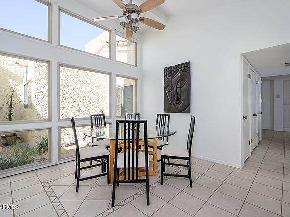 Back on the market after fresh paint and carpet May 2025. Welcome to a perfectly situated single-level home picturesque with mountain views from multiple locations in and around the grounds located between the highly sought-after Biltmore and the vibrant Uptown District. This move-in ready, lock and leave three-bed, two-bath home is a delight. No neighbors behind since it backs to the arroyo, which sits in a very quiet cul-de-sac. Watch the wildlife scamper in your zen-like surroundings as you sit on your private patio with your morning coffee and watch the beautiful colors of the sunrise and sunset. Wood, tile, and carpet flooring. Ceiling fans, dual pane windows and doors throughout. Split floor plan. Owners barely live in the home four months (continued) of the year. Easy-care landscaping. Three orange trees loaded with fruit. Custom security door. Bright and open floor plan. Wood floors installed 2022, and front and back landscaping dripl ine redone 2023. HOA fee includes TV, which includes Showtime, HBO, HBO Max. Walk to hiking, walking and biking trails of Piestewa Peak as well as two nearby parks. Convenient to the freeway, schools, restaurants, shopping. Within the coveted Madison School District. Conveniently located mere minutes to the airport. Adjacent to the Pointe Hilton Resort Hotel, which offers discounts and specials to Pointe homeowners. Community heated pool and spa.