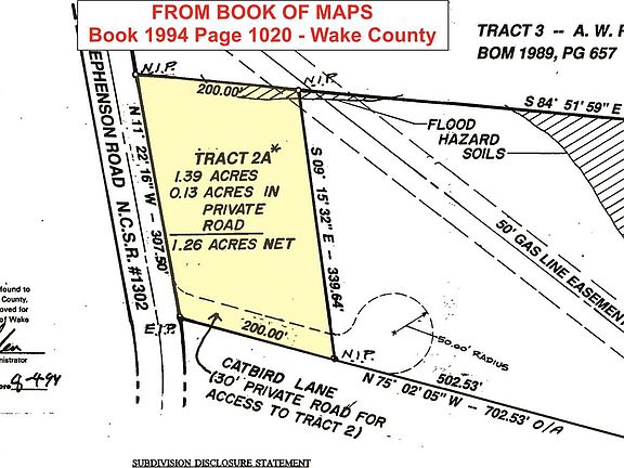 Excellent Wake County Location! Near Ten Ten Road, Rt. 1, and 540. Partially cleared and PERK TESTED 4 BEDROOMS in 2017! 1.39 total acres with .13 private road right of way for access to adjacent lot (net acreage 1.26). See map in images.