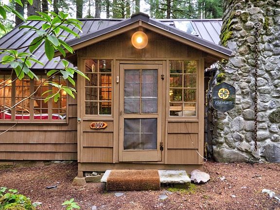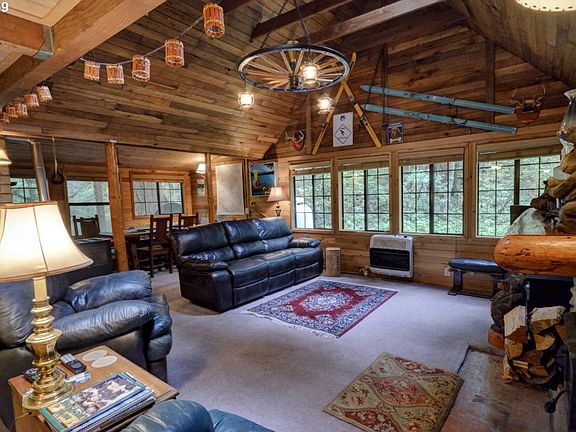 This is the ultimate ski cabin, located only seven minutes from the slopes, is located along the Zig Zag River in the Mt. Hood National Forest. You'll enjoy a crackling toe warming fire around the natural stone fireplace. Vaulted ceilings with rustic wood ceilings and walls. Sleeps a group of 7 with two private bedrooms and a cozy loft. Mud room with dryer takes you to the back deck. Short path to river. Furnished and only 1 hr.to PDX