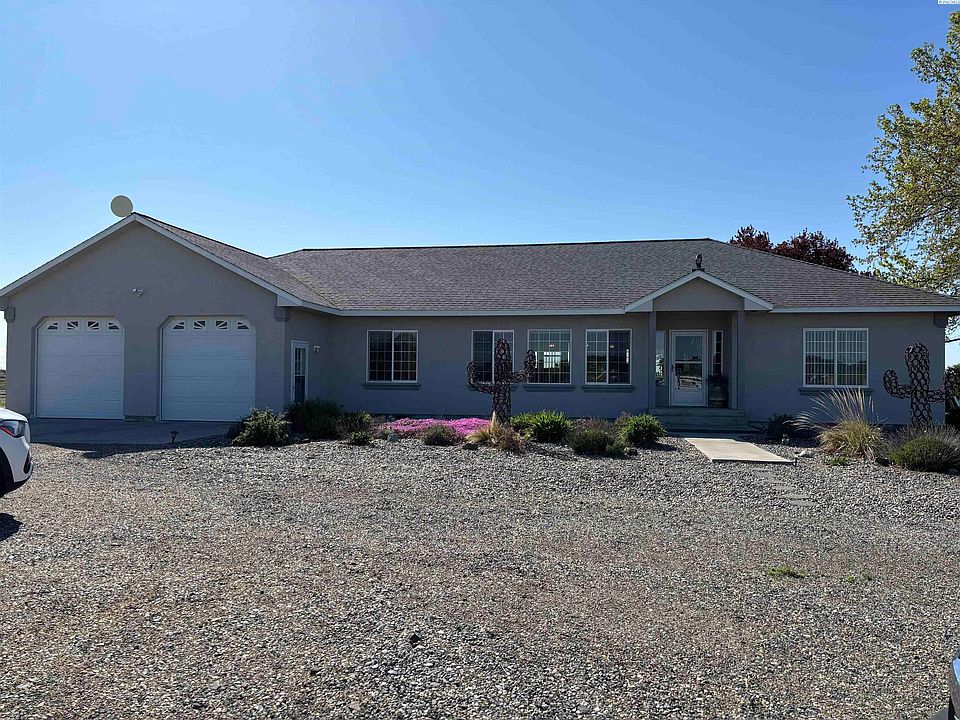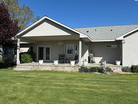 WOW! What a view! Top of the world panoramic view from theis 2006-built custom home. Split bedroom layout, grande open floorplan, and the 3rd room is currently used as a quilting room, but could be a rec room, separate living space for accessory unit or add a wall to make it another bedroom. The property was formerly part of a dairy operation. The milking barn has been converted into a HUGE shop and additional garage space. It has 220-amp power in several locations, propane heater, Wall HVAC unit and a half bath. It is partitioned into 4 different spaces with a concrete floor. The loafing barn also has a full concrete floor and a concrete apron out to the back. Livestock panels DO NOT STAY with the property. Farm land is planted to both hay and pasture and is leased through the end of the 2025 crop season. Land is in solid set underground irrigation with water coming from a pond shared by the farm. SCBID irrigation. There are 23 acres allowing for a short plat of up to a 3-acre partitiion for an additional building lot. Seller will not divide, but a buyer can.
