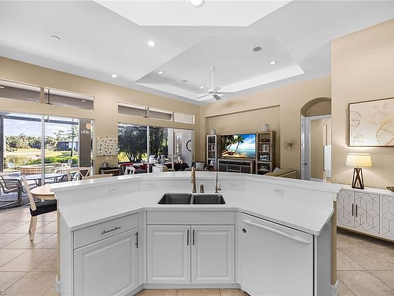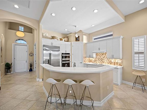 Introducing a rare opportunity to acquire a San Remo residence featuring a sought-after and enduring open floor plan. This well-maintained home includes plantation shutters for stylish light control and ceiling speakers with an amplifier for music in living areas and lanai. Recent upgrades over last five years include a new air conditioner, updated bath countertops, modern faucets and fixtures, plus fresh paint inside and out. The kitchen features a GE Monogram built-in microwave, wall oven, and 45-inch refrigerator, induction cooktop with GE 50-amp wiring for reliability. Water quality is improved with reverse osmosis, and washer and dryer are newly upgraded. The main bedroom is finished with wood flooring, while diagonal tile is used throughout the remainder of the home. The electrical panel was replaced, enhancing safety and reliability of the home's electrical system. The roof has been replaced, new outdoor garage lights were installed and the garage door insulated to improve energy efficiency. The lanai features a children's safety fence, picture window screen with views of water, golf and preserve areas, and privacy screens for a peaceful setting. The saltwater pool includes a variable speed pump and heater for year-round comfort. Electric Kevlar shutters provide added safety and convenience. Your deeded membership grants you access to the renowned Players Club and Spa. This club sets the standard for resort community amenities, featuring three swimming pools, 13 tennis courts, four pickleball courts, four bocce courts, a staffed fitness center and a full-service spa. You can enjoy dining at two on-site restaurants, which offer indoor and outdoor seating for either relaxed or fine dining experiences. Lely Resort is conveniently close to amenities, restaurants, and beaches of Marco Island and downtown Naples.