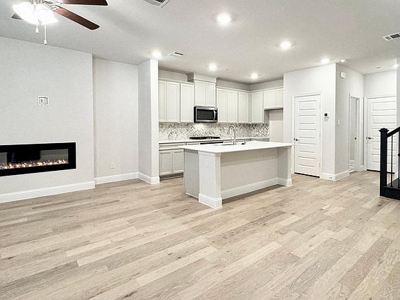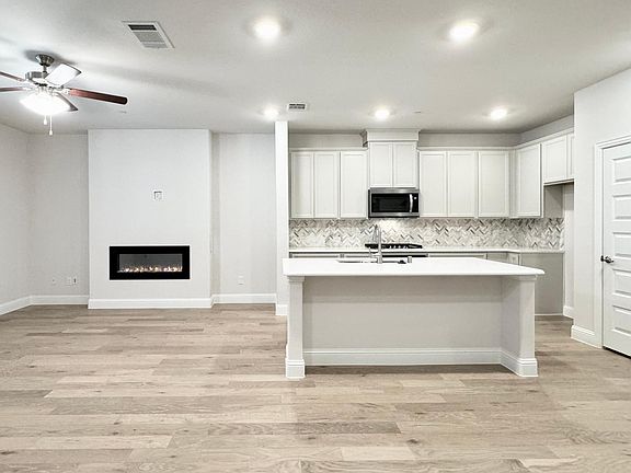 Live by the lake in this beautiful brand new townhome with a large lovely covered front porch. 3 bedrooms, 3 full baths plus a powder room and a flex room that can be used as an office or kid's game room. Chef's kitchen comes with Quartz countertops, all stainless steel appliances, gas burner cooktop, large island with tons of cabinetry. Owner will provide a brand new matching fridge. Kitchen overlooks the dining area and family room with a gorgeous electric fireplace. Second floor features a spacious master with dual vanities, large shower, and walk in closet. A secondary bedroom and a flex room also on the second floor with a full bath. Third floor features a private suite that has an oversized covered balcony with partial Lake View. Oversized 2-cars attached garage with extra storage space. Bayside townhomes offer residents lakefront living, just minutes away from shopping, dining, and major highways. No yard maintenance. READY FOR MOVE IN!!