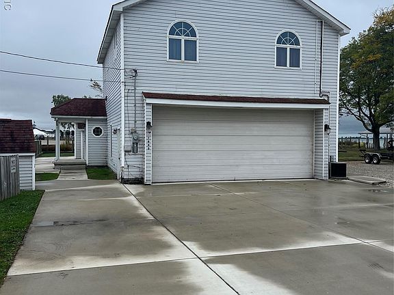 Waterfront Living on Anchor Bay! Enjoy beautiful bay views and 65 feet of canal frontage with your own private boat slip. This spacious home offers 3 bedrooms and 2 full baths, featuring a bright 3-season room with panoramic windows perfect for watching the boats go by. Main floor has 1 bedroom, 1 full bath, living room, and kitchen. The upper level includes its own kitchen, two large bedrooms, and a family room with expansive windows and a sliding door leading to the upper deck—ideal for taking in the stunning lake views. Power chair for easy access to upper level. The oversized garage boasts a 24-foot door and provides ample space for vehicles, storage, and all your lake gear. Quality built home.