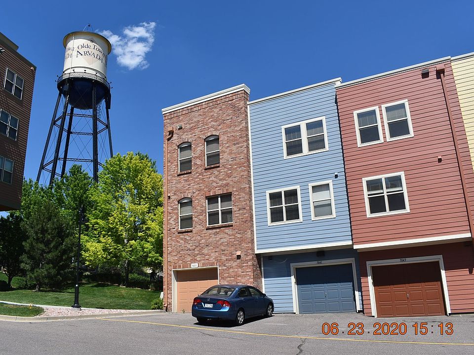 Stylish Rowhome with a fabulous open floor plan located in the heart of Olde Town Arvada. Ground level is a 1-car garage w/mechanical room (Furnace/AC/H2o Heater) plus additional "bonus room" for an office of flex room of your choice. Main level includes kitchen with granite countertops, dining area, powder room, large living room with gas fireplace and a large balcony for all of your BBQ/entertainment needs. Upper level includes 2 nice sized bedrooms. Master bedroom has a 3/4 bath with large walk in closet and spare bedroom has a full bath. Laundry area is on upper level as well for your convenience. All upgraded appliances included plus front load washer/dryer. HOA fee is paid for by owner, and it includes access to club house, 24/7 fitness center, heated spa, swimming pool & all exterior maintenance. Light Rail / RTD Station is within walking distance. Close to popular shopping, restaurants, and trendy Old Town Arvada. Easy access on/off major highways. Brand new neutral color paint throughout! Newer carpets.