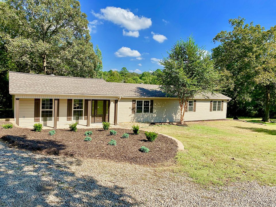 Totally remodeled, gorgeous open floor plan with cathedral ceilings, 3 eating areas, 4 bedrooms, 3 baths home (1850 sq ft) with covered porches and outdoor living areas on 1 peaceful acre in Rudy AR! New: Roof, energy efficient windows, beautiful custom kitchen with granite countertops & custom back splash, SS appliances, bathrooms, vinyl plank flooring, tile, carpet, paint, ceiling fans / LED light fixtures, doors (interior and exterior), updated electric and plumbing, etc. 100% financing available, closing costs paid, $500 gets most buyers in!! $189,900. Contact Terry Dahms @ 479-739-0022. (BTW, the bathroom floors are not sloping, that is the new iPhone ultra wide lens that is creating that illusion LOL)