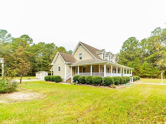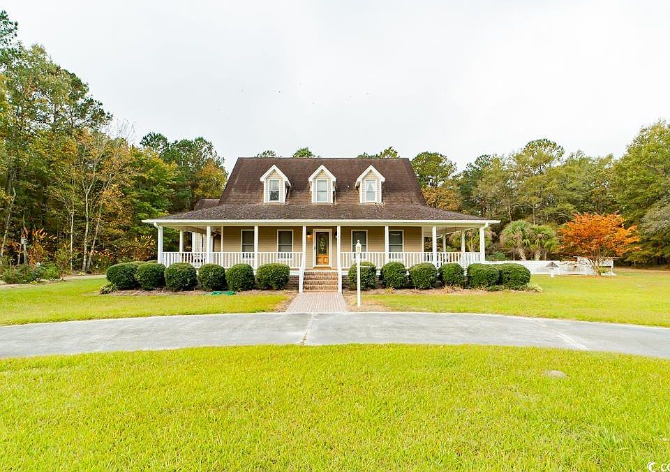 RARE FIND! This 3 bedroom, 2 bathroom Lowcountry style home sits on a beautiful 18 acre tract with no HOA and no zoning restrictions! From the wrap around porches complete with porch swings, to the farm style kitchen and rustic 1" tongue-in-groove Heart Pine floors throughout, this home is a perfect example of Southern Charm. The downstairs features the kitchen, formal dining room, living room, laundry, first bathroom, and master bedroom, which has his-and-hers closets and direct access out to the wraparound porch. The other two bedrooms are split floor plan upstairs with a second bathroom in between, and are cute and cozy with features like window cutouts and wooden built-ins. The area of the property where the residence is located also has a 4 car carport, two detached sheds, and an inground pool. Just a short walk down a wooded path into the back of the property ends you out into the cleared rear 10 acres, previously used for farming. Just 20 minutes from downtown Conway, this property is perfect for the buyer who wants to be outside the hustle and bustle of a busy town with their own chunk of paradise, but still within a reasonable drive to get there if you need to. Schedule your showing today to check out this gem.