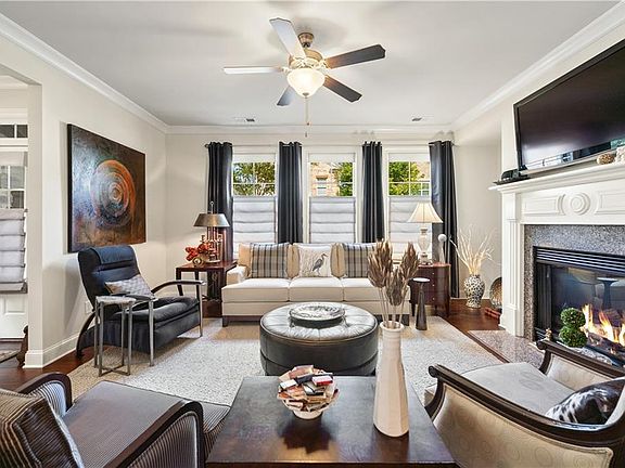 Stunning and beautifully appointed. ABSOLUTE TURN KEY and move in ready. Location, location, location! The original owner has meticulously maintained and updated this home with all of the highest quality materials. Walk to Halcyon, Trader Joes, Big Creek Greenway and so much more. Just minutes to the new McFarland exit at GA 400 being completed soon. Located in the sought after jamestown boasting an Alpharetta address with Forsyth County taxes. With four bedrooms and 3.5 baths this home will meet and exceed all expectations. The two car garage is on the same level as the main living where there is no need for lugging groceries up stairs to the kitchen. The original owner of the home has spent over $75,000 making thoughtful and tasteful upgrades throughout which stands apart from many of the homes in Jamestown retaining builder grade finishes. Custom Roman shades in the living areas and kitchen upgrades includes new sophisticated, premium appliances, one-of-a-kind natural quartzite countertops from Brazil, granite composit sink, new hardware and backsplash, oversized color contrasting island and large walk-in-pantry. Wood accent walls add a beautiful dimension and warmth to the space. The primary bedroom offers two WICs and an updated bathroom with all natural quartzite counters, undermount sink, 8" spread faucets and a European shower enclosure with shiplap accent walls. Hardwood floors on the first level were upgraded to the primary bedroom and upstairs hallway. Two additon guest bedrooms share a Jack and Jill bathroom. The third floor boasts a private 4th bedroom that is en-suite and perfect for guests, teen suite or craft room (Currently used as an office it would also make a great media or gaming room). Custom 5" crown moldings and base moldings are in every formal or common space room of the home. The Charlestown style courtyard is fenced, private and boasts a blue granite walkway, flower covered trellis and lush easy to care for plantings. This courtyard is amazing and adds beautiful outdoor entertaining space for hours of enjoyment. The home was recently painted outside to give you a crisp new look for years of low maintenence. Jamestown is an active tennis, pickelball and swim community with low HOA fees. WELCOME HOME Seller is a Georgia licensed real estate agent.