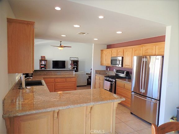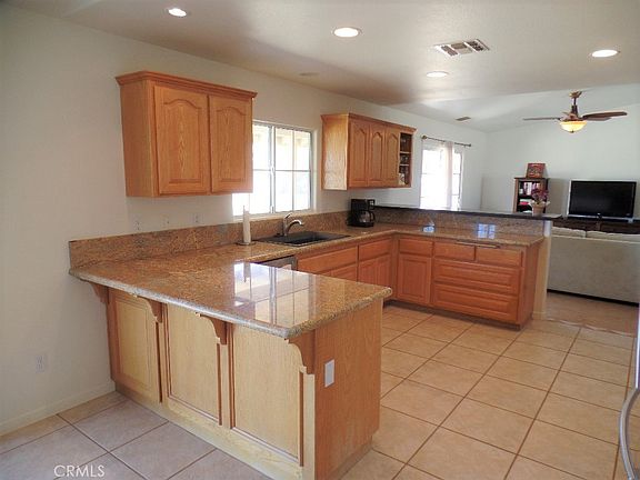 Location, location, location! This beautiful home has absolutely amazing mountain and desert views! Enter to spacious living room with fireplace and vaulted ceilings. Living room, gorgeous kitchen and dining room all feature unforgettable mountain views. Home offers 4 bedrooms and 2 bathrooms. Layout is open and light! Large laundry room also has built in cabinetry and a utility sink. Large master bedroom has a walk in closet and window to the mountain view. Garage is finished and back yard is fenced. Located on over half an acre just minutes from Joshua Tree Village and famous Joshua Tree National Park.