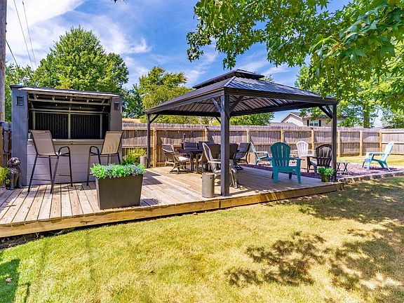 Situated on a large corner lot this spacious updated full brick ranch with brand new roof offers 3 bedrooms, 2 baths, a 2.5 car side load garage and everything you need for comfortable living and effortless entertaining. Outdoor enjoyment is easy in the large privacy fenced yard with patio area and lush lawn that is perfect for relaxation, pets, and play. The backyard also features a raised deck with pergola complete with bar and a fire pit area perfect for gathering with friends on cool evenings. This versatile floor plan offers a generous great room and a separate family room perfect for media with shiplap accent wall and built-ins. The updated eat-in kitchen offers stainless steel appliances and opens to the charming dining room with decorative fireplace and built-ins that is perfect for casual meals or formal gatherings. The owner’s suite offers double closets and an ensuite bath. There are two additional spacious bedrooms used by the current owners as home offices with access to the updated full hall bath offering a tub/shower combo with tiled surround. The sunroom offering an additional 216 square feet of living space that is not included in the total square footage is the perfect place to enjoy your morning coffee or your favorite sporting event with wall mount TV included. The laundry with shelving is conveniently located off the oversized 2.5 car garage with new smart garage door opener and attached shelving. This immaculate updated home offers a great location in the heart of Newburgh and is move-in ready!