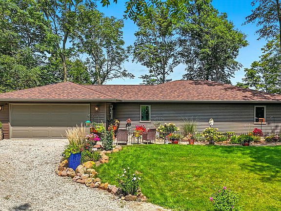 Newly built in 2021, this impressive home overlooking Lake Odessa has unbelievable views of the lake, surrounding wildlife, and is nestled on 9.58 acres of wooded shoreline. 2 bedroom suites, open concept living room / kitchen, deck/patio with firepit, hot tub, extensive landscaping, and a couple small sheds for storage. Built to be energy efficient, the home is all electric with air to air heat pump. You must see to appreciate.