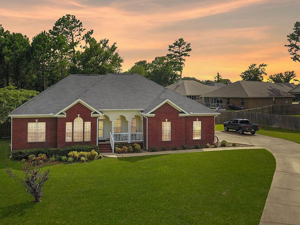 $3,000 TOWARD BUYER'S CLOSING COSTS!! COME SEE THIS CUSTOM-BUILT HOME BY DAN MOONEY HOMES IN EAGLE CREEK with a brand-new bronze-fortified roof. As you enter in, there's a beautiful living area with large gas fireplace. This home has beautiful crown moulding. To the left you have an office with french doors, 2 bedrooms and a Jack-and-Jill bath. To the right, you have a spacious dining room, beautiful kitchen with granite, tile backsplash and stainless appliances (2018), a breakfast area, nice laundry room, half bath, and primary bedroom suite with sitting area, Jacuzzi tub, double vanities, separate shower and walk-in closet. Tankless water heater (2018). The beautiful sunroom on the back overlooks the large backyard big enough for a pool, which is fenced and has a 10x16 storage shed with electricity. This home is located near Daphne Elementary & Middle schools, Trione Park, the YMCA, the Daphne Sports Complex with playground and water park and just 2 miles from shopping, grocery and dining. Termite bond with Southeastern. 7-zone irrigation system. Gutters have leafguard protection. Quiet neighborhood tucked away in the middle of it all. HOA is only $150/year. Boats have to be parked in the backyard behind the fence. HVAC is 2014, serviced 2x year, every year. This is a very well-maintained home. Don't let this one get away!!