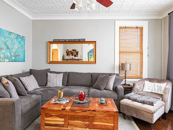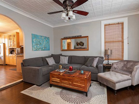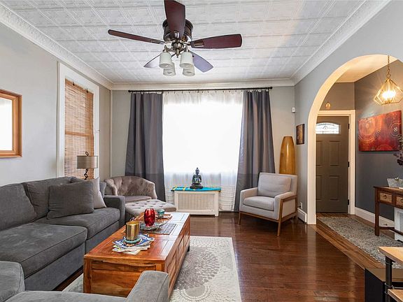 This home has all you need. Entry way with coat closet with a spacious living room with ceilings that are original to the home. Must see to appreciate the character in this house. The Eat in Kitchen is large with granite countertops and newly tiled floors. Washer and Dryer on the first floor. Second floor has 3 bedrooms and full bathroom. Fully finished basement with Bilko doors to a large backyard. Private Driveway. Home is located in an area the is close to Transportation, Library, shopping and house of worships.