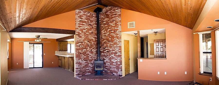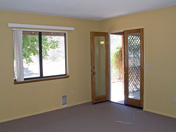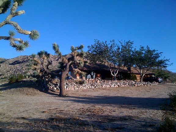 This one of a kind property sits on five acres and backs onto the Joshua Tree National Park. It is extremely private and the views in all directions are gorgeous. The living room has vaulted ceilings and a wood burning stove. Two bathrooms and both swamp cooler and central air. Perfect for artists, musicians, or just those wanting to commune with the surrounding beauty.