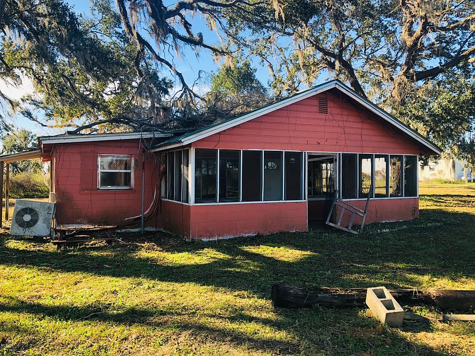 Here's a real deal, Home in the country with some Hurricane Damage to the roof. Concrete block wall, fireplace. Country living no doubt. House has great possibilities. plenty of room for a garden spot. Take a look and see if this is for you. Great price to have a home or a great rental.