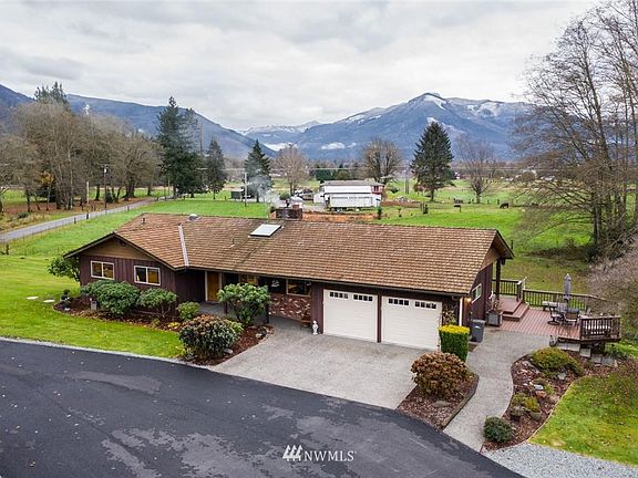 Multi use 4.34 acre hobby farm east of Sedro Woolley. Spacious (2964 S. F.) 3 bed 3.5 bath updated daylight rambler.Oak kitchen with granite counters and eating bar. Formal living and dining areas. Outstanding southern views. Updated master bedroom with amazing walk in closet and private bath. Lower living area with 3rd bedroom and private access. 3 bay 1560 S.F. shop with 840 S.F. covered storage/stable. Nestled on beautiful acreage well suited for animals/gardening.
