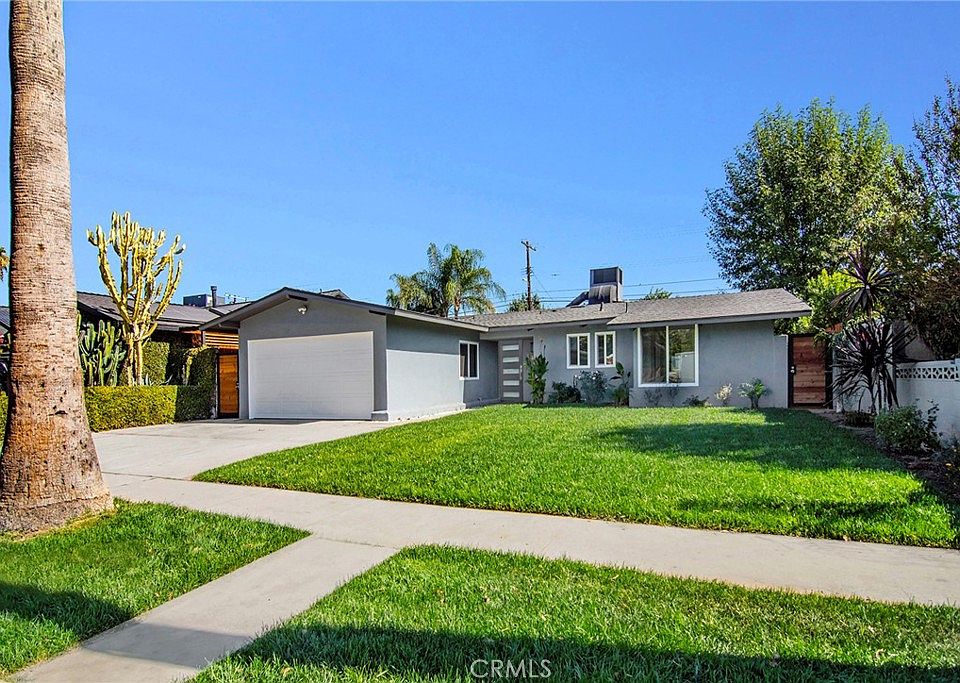 This stunning open concept, fully remodeled home, has 3 bedrooms and 2 bathrooms, and is centrally located in Reseda. The master bedroom has its own en suite bathroom. The kitchen has new shaker cabinets, quartz countertops, a gorgeous contrasting quartz island with waterfall detail, and a 33” farm sink. You will find a new LG stainless steel wi-fi enabled smart single oven with gas range, a new LG microwave, and a new LG stainless steel dishwasher. The kitchen opens up to the great room which will be perfect for entertaining. You will also find two new skylights in the great room. The modern front door is made of fiberglass with pick-resistant smart key deadbolt hardware. The bathrooms have been fully remodeled with new toilets, showers, tiled floors, sinks, quartz countertops, and beveled mirrors. The exterior has new stucco and paint, redwood and steel gates, and the pool has been replastered, with new lights, pump, filters, suction and return lines. The shingle roof is also new. This modern beauty is a must-see.