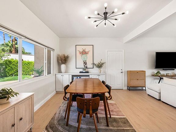 Brand new flooring in French Oak coloring installed in September. Just Reduced + Financing Available at 3.99% +Turnkey Furnished! Beautifully renovated and immaculately maintained, this single family home is located within the private, gated community of La Quinta Country Club Montero Estates. Renovations have included an open-concept floor plan, contemporary white kitchen with quartz countertops and stainless steel appliances and newer sliders and windows for noise reduction. The primary suite is light and airy and boasts two large closets. Both bathrooms have a spa like feel with glass walls and white quartz and tile finishes The oversized lot boasts 11,326 sq ft and offers expansive views from both the front and backyards. The outdoor space is adorned with mature citrus trees, a large grassy area, and hedges of ficus trees for privacy. The patio is ideal for entertaining and is the perfect perch to enjoy your morning coffee with mountain views. Community amenities include sparkling pools and spas, tennis courts and two gated entrances and exits. Conveniently located near Old Town La Quinta, residents have easy access to a variety of restaurants, shopping, hiking, grocery and more. Homes in this development rarely come up for sale so do not wait to schedule a viewing. HOA ($600/Month) with an additional yearly fee of $780 which covers all the gate and road maintenance. HOA covers community pools and spa, exterior landscaping, exterior water bill and more. Turnkey furnished. Seller's are offering a financing credit to buy down the rate to 3.99% (a 2/1 buydown) and details are attached.