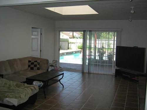 Great pool home with upgrades! This spacious single-story home features an open living room with wood floors and a stone fireplace, a remodeled kitchen with granite countertops, and a large family room with skylight. There are also 3 bedrooms and a laundry room. Detached 2-car garage and pool in back.