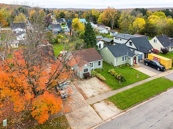 This charming 2-bedroom bungalow is full of character and thoughtful updates, offering easy living in a quiet residential area on the east side of Owen Sound! Step inside and you'll find a bright, inviting space with fresh flooring in the kitchen, dining, and mudroom areas. The kitchen has been tastefully refreshed with a new counter, sink, and fridge, creating a clean and functional hub for daily life. The cozy layout features hardwood flooring in both bedrooms and under the carpet in the living room, a renovated 3-piece bath (2018), and convenient main floor laundry. Enjoy the comfort and efficiency of a new heat pump and A/C unit, with electric baseboards as backup. Outside, relax on the back deck (2021) or unwind in the hot tub (as is) within the fully fenced yard-perfect for kids, pets, or private outdoor entertaining. Two storage sheds provide plenty of space for tools and toys. The home's exterior has been upgraded with vinyl siding, eavestrough, soffit, and fascia, and the roof shingles were replaced in 2019, giving peace of mind for years to come. Located close to parks, schools, shopping, the hospital, and public transit-this is a must-see for first-time buyers or those looking to downsize and enjoy simple, comfortable living in a great neighborhood.