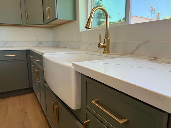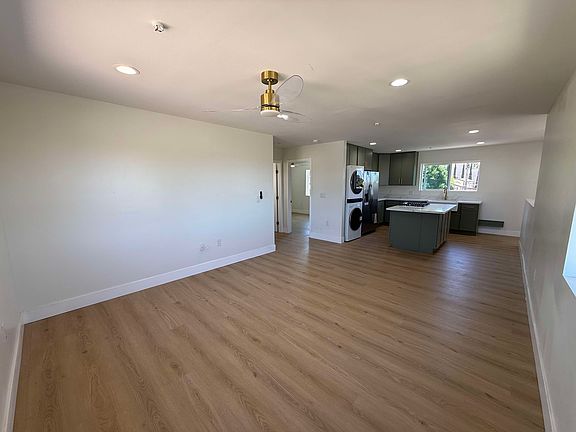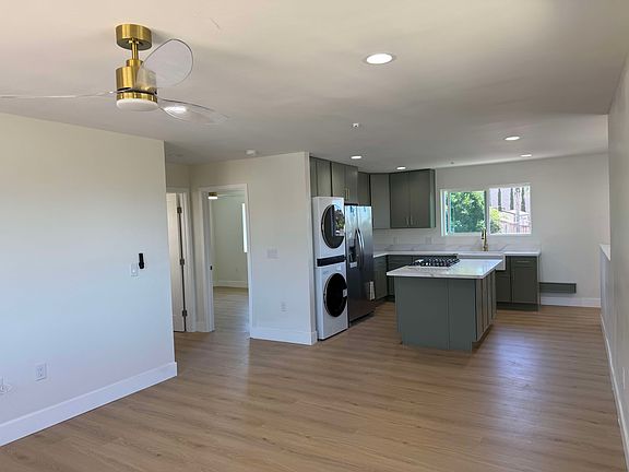 2025 NEW CONSTRUCTION. This open concept, second floor 2b/1b has never been lived in and is fully equipped with in-unit washer/dryer and AC mini splits in every bedroom. The kitchen features beautiful quartz counters, modern sage green cabinets, gold fixtures, stainless steel Frigidaire appliances (gas stove, fridge/freezer) and island. Bathroom is complete with quartz counters, oak vanity, touch mirror and modern tile. The unit also feature wide plank vinyl oak flooring, dual pane windows and recessed lighting. 1 parking space available at unit + street parking. Conveniently located near downtown Vista, Moonlight Amphitheater, Alta Vista Botanical Gardens and SR 78 freeway.
