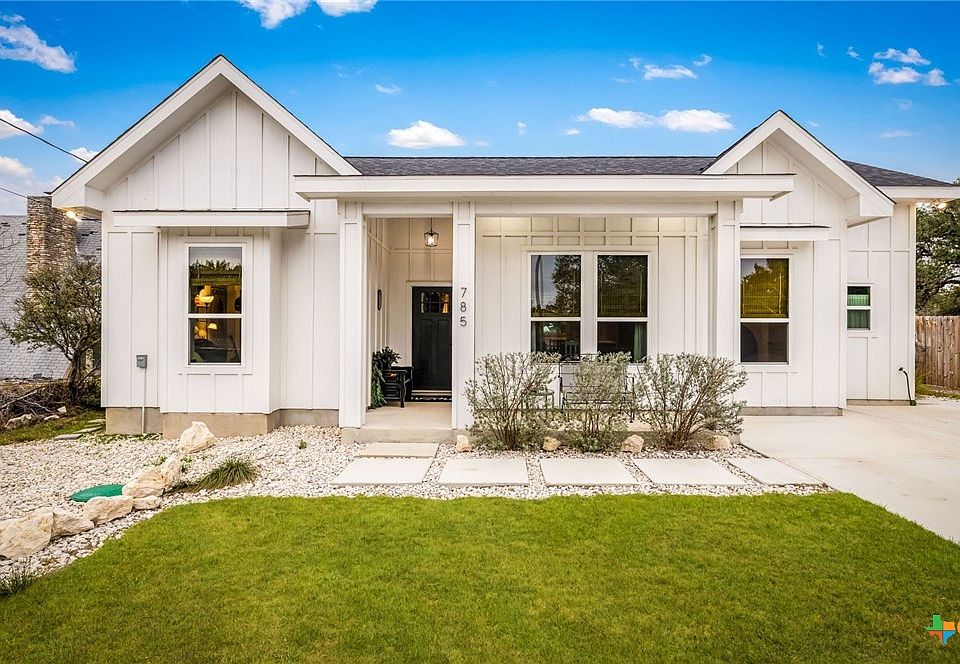 Modern one-story home located in the heart of Canyon Lake, offering a peaceful setting away from city congestion. Inside, tall ceilings and an open-concept living area create a bright, airy feel that’s both welcoming and spacious—perfect for relaxed living or gathering with friends and family. The kitchen anchors the home with clean quartz countertops, stainless-steel appliances, and durable tile flooring that flows through all main living areas, blending style with easy upkeep. Three bedrooms and two baths, including a spacious primary suite with marble-accented shower. Outside enjoy the covered porch where you can take in peaceful views from dawn to dusk and truly enjoy the quiet surroundings. A setting that feels worlds away yet close to Canyon Lake living and a short drive to New Braunfels and San Antonio, this home is an easy place to slow down, settle in, and feel at home.