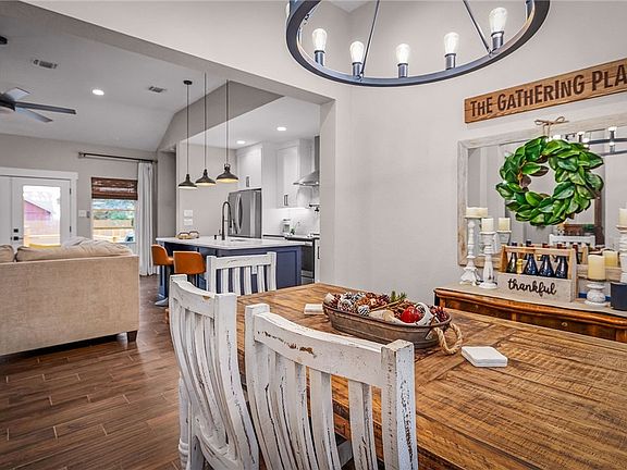 - All Bedrooms Down, Built-in Features, Tray Ceiling(s), Ceiling Fan(s), Chandelier, Cathedral Ceiling(s), Double Vanity, High Ceilings, Open Floorplan, Pull Down Attic Stairs, Recessed Lighting, Smart Thermostat, Walk-In Closet(s), Window Treatments, Custom Cabinets, Kitchen Island, Kitchen/Family Room Combo, Kitchen/Dining Combo, Pantry, Pot Filler, Solid Surface Counters