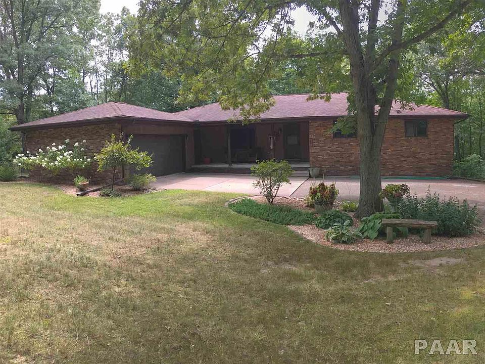 Love the outdoors & your own private place to hunt? This ranch style home nestled on 8 wooded acres in Partridge Point Farms, Metamora is the perfect spot. Main floor features fireplaced living rm, 3 season rm over looking woods, formal dining rm, fully applianced eat-in kit updated 2005, main floor laundry rm & 1/2bath. Master br w/full updated bathroom +2 additional brs & full bath. Lower level offers theater rm, 4th bedrm, full bath, office area, workshop and a craft rm. Numerous updates including HVAC 2005, septic 2009 and most windows. Attached 2 stall gar & storage under 3 season rm