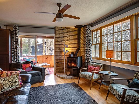 This furnished fantastic bungalow is in Boone, North Carolina, and offers a peaceful setting with stunning seasonal views and cool breezes. This two-bed, two bath home has a queen-sized bed and a master bath. The second bedroom has two twin-sized beds. There is a second full bathroom off of the hallway. The living room has a lovely view, hardwood floors, cozy fireplace, and a Smart TV. The kitchen has tile countertops, and the dining area seats up to four people. *On the lower level, there is an apartment with a separate entrance. The long-term tenant is quiet and rarely there. *Please note that there is always a chance of snow during the winter months. For your advantage and for the sake of others who use the road, the owners request that renters travel in an all-wheel or 4-wheel drive. No smoking. $200 pet deposit, $200 cleaning fee. Electric, water, propane & internet included. No cable or satellite tv, but strong wifi.