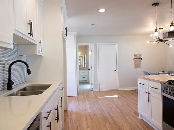 Welcome home to this charming, completely updated bungalow in the desirable HEB community and school district. Enter the inviting open-concept living and dining rooms that boast oak hardwood floors that seamlessly cascade into the entertaining-ready kitchen. This chef's kitchen features custom cabinets, an island, an upgraded appliance package and other designer flourishes such as bronze fixtures, which are carried throughout the home. Updates are numerous including electrical, plumbing, windows and doors, bathrooms, a privacy fence and a new deck perfect for lounging. The home is located in walking distance to West Hurst Elementary School, Hurst Community Park and major retail and dining outlets.