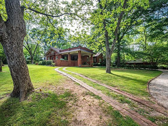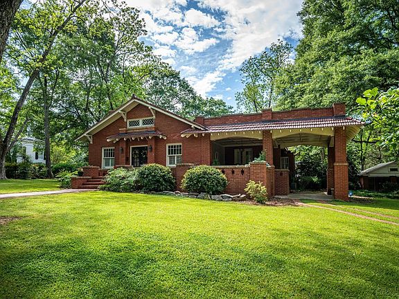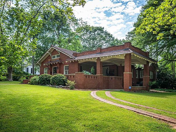 Located in the heart of Madison’s Historic District, the Callaway-Engle house is a remarkable example of the American Arts and Crafts Architecture movement which began in earnest in the late 1800’s. This brick and tiled-roofed home built in 1920 by Martin Callaway and features many exterior and interior hallmarks of the Arts and Craft style including the side porte cochere, exposed rafter tails, front and rear porches, low-pitched tile roof, beautiful wood floors, prominent fireplaces, and wood craftsman windows. The open floor plan offers gracious rooms with 10-foot ceilings and lots of natural light - perfect for entertaining. Three of the bedrooms are suites with their own baths, and the owner’s suite features his and her closets and its own study overlooking the rear garden. The laundry is in a small, dry and light-filled basement which offers additional storage. The property is just over a half-acre, and it includes a two-level garage that could accommodate up to 4 cars, front, side and rear gardens, and is an easy walk to downtown Madison.