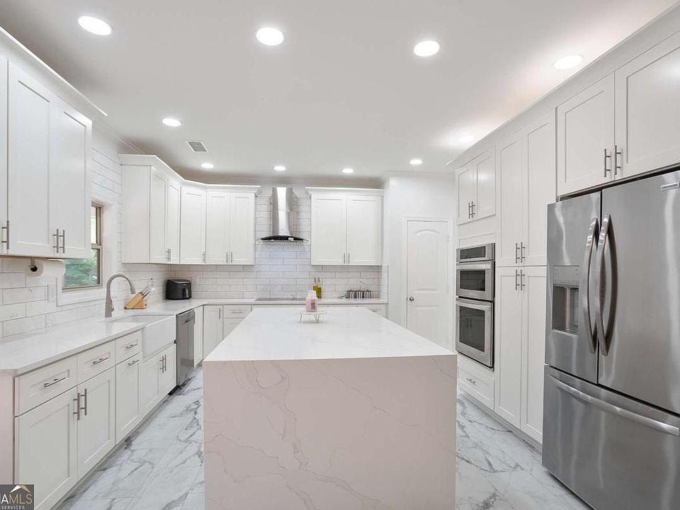 Experience luxury in this exquisite 7-bedroom, 4-bath Alpharetta residence. An impressive two-story foyer opens to a formal living area, while the renovated chef's kitchen features new shaker cabinets, quartz countertops, and stainless steel appliances. The open layout flows seamlessly to a family room. The main level includes a bedroom and full bath, while the second story features a spacious master suite with an updated bathroom and three additional bedrooms. The fully finished basement offers two bedrooms, a bath, an office, a theater, and another living area. A private, fenced backyard with a large deck and a charming front porch complete this stunning home, located in a desirable area with excellent schools.