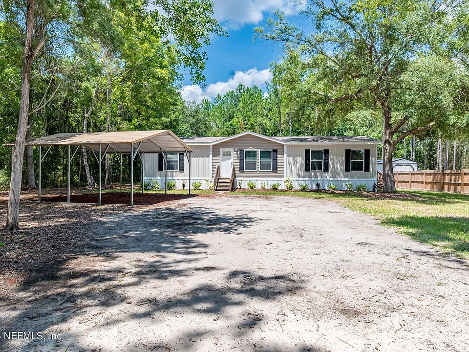 Welcome to this beautiful 2023 double wide nestled on just under 1.5 acres in the heart of Starke, Florida! This spacious 3-bedroom, 2-bath home offers a split floor plan with walk-in closets in every bedroom and dual closets in the master suite. Enjoy modern touches like a charming coffee bar, a generously sized laundry room, and open living spaces perfect for everyday living or entertaining. Outside, you'll find a metal carport and a portable shed for additional storage. Conveniently located with room to grow this property combines comfort, space, and a prime location!