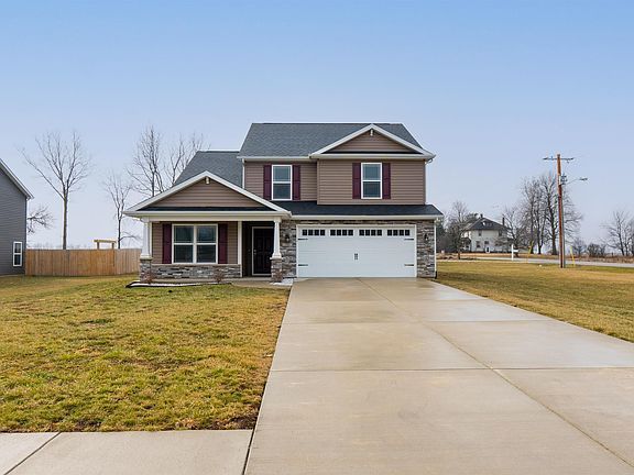 Nestled in Frankfort's desirable Clintonside Estates, this stunning two-story residence was recently completed by Majestic Custom Homes in 2020. With the Alexander floor plan, this home offers over 2,200 square feet of living space, including four bedrooms and 2.5 bathrooms. The living room boasts cathedral ceilings, while the open-concept kitchen features a spacious breakfast bar and a formal dining room. The first-floor master suite includes a roomy walk-in closet, and the upper bedrooms share a jack-and-jill bathroom. Additional features include two thermostats and fresh paint throughout. Outside, an irrigation line has been added to the well-maintained yard.