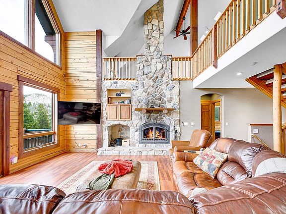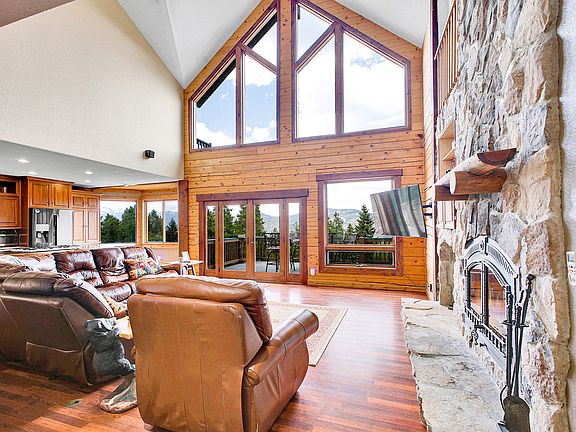 With 3 expansive floors, this residence combines elevated comfort with authentic mountain character. Vaulted ceilings and soaring floor-to-ceiling windows flood the great room with natural light and frame sweeping views of the Continental Divide. A striking fireplace anchors the living space, while rich textures of exposed brick and wood accents add warmth and timeless appeal. Two spacious king bedrooms and a third bedroom with twin beds provide generous accommodations, perfectly suited for both relaxation and entertaining. The fully appointed kitchen features modern appliances, a breakfast bar, and an open flow to the dining area, making gatherings easy and memorable.
