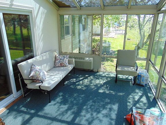 Living is easy in this impressive country ranch on almost an acre. Enjoy the countryside around you from the front deck or the glassed in sunroom in the rear of the home. Features a large open concept dining and kitchen area with oak cabinets and laminate wood look flooring. The laundry can either be located off the kitchen or in the unfinished full basement. There is a whole house generator and updated electric panel. Furnace and hot water tank are newer. There is also an underground Invisible Fence system for a dog.