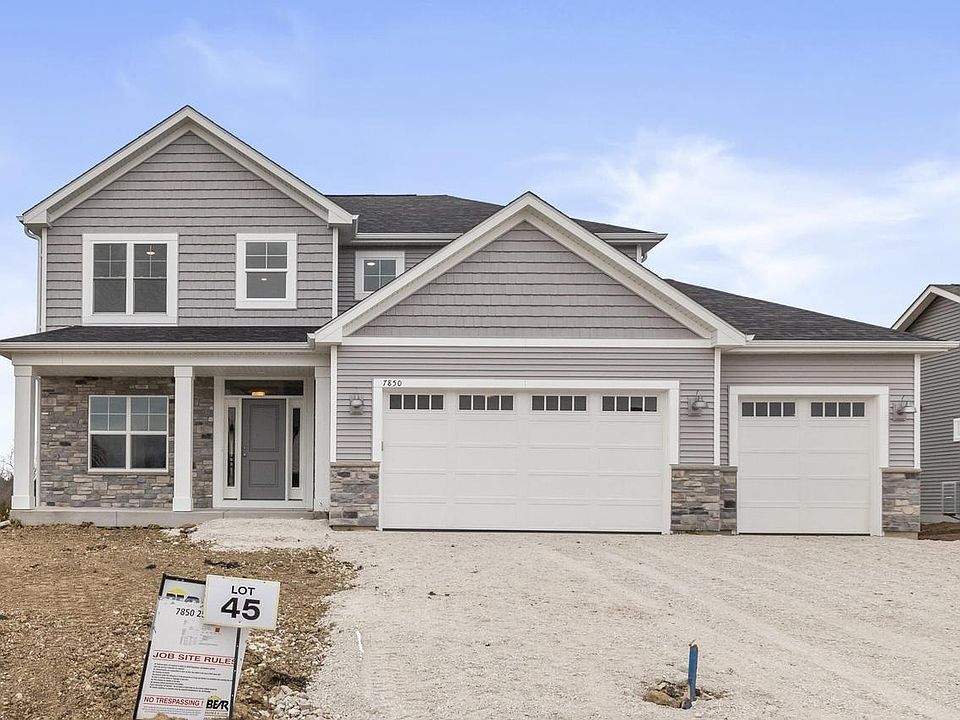 Bear Homes proudly presents this move-in-ready Wellington plan! Offering over 2,300 sq ft, this 2-story home features 4 bedrooms plus a versatile 1st-floor office/5th bedroom. The open-concept design highlights quartz countertops, LVP flooring, and a tiled master bath with a beautiful walk-in shower. A cozy fireplace anchors the spacious great room, while the daylight basement is ready for your finishing touch. Added features include a stainless steel kitchen appliance package, concrete driveway, 1-year builder warranty, 15-year dry basement warranty, and 3rd-party energy testing by Focus on Energy. Enjoy privacy and nature right in your backyard, your new home is waiting!