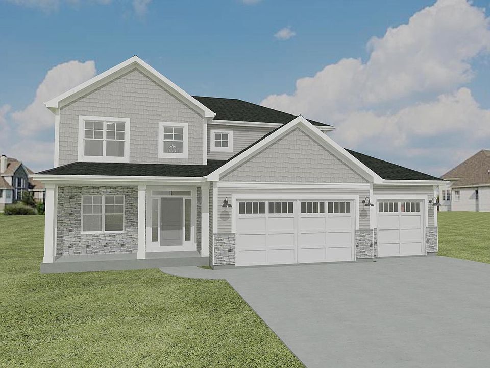 Bear Homes proudly presents this move-in-ready Wellington plan! Offering over 2,300 sq ft, this 2-story home features 4 bedrooms plus a versatile 1st-floor office/5th bedroom. The open-concept design highlights quartz countertops, LVP flooring, and a tiled master bath with a beautiful walk-in shower. A cozy fireplace anchors the spacious great room, while the daylight basement is ready for your finishing touch. Added features include a stainless steel kitchen appliance package, concrete driveway, 1-year builder warranty, 15-year dry basement warranty, and 3rd-party energy testing by Focus on Energy. Enjoy privacy and nature right in your backyard, your new home is waiting! Est. completion end of November 2025.